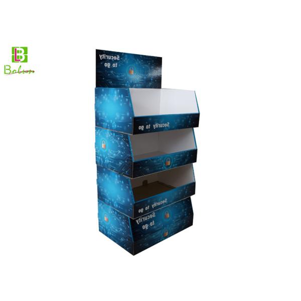 Blue Cardboard Floor Display Shelves Three Tier For Electronic Products Images |